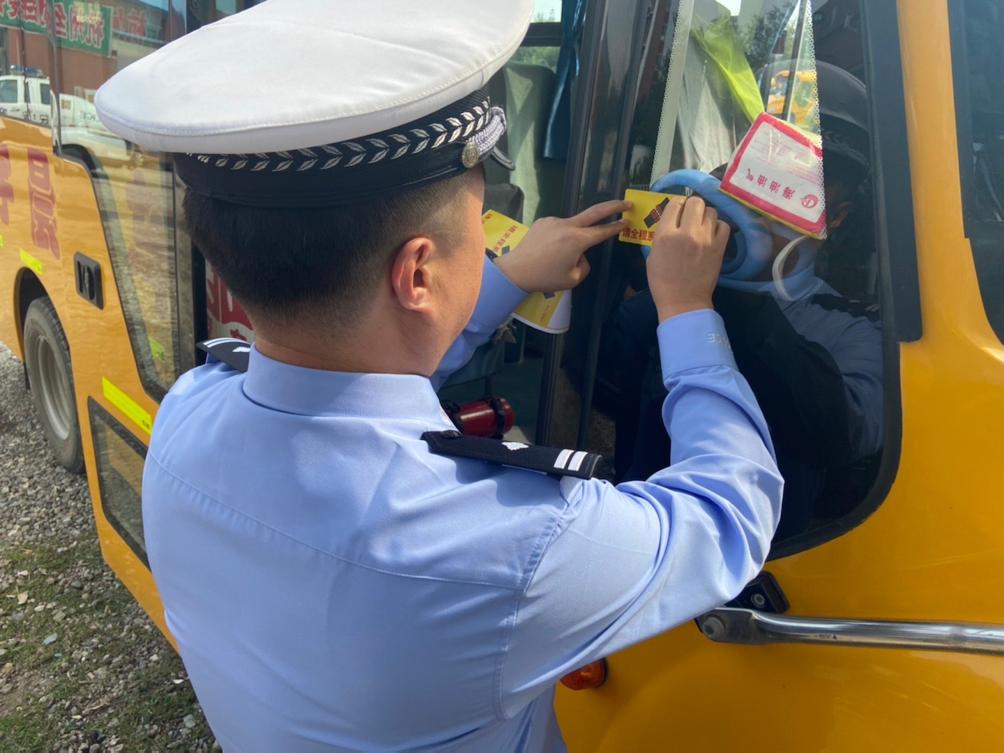 各中小學開學臨近,為預防和減少暑期校車道路交通事故。2021年8月31日下午,呼和浩特市交管回民大隊宣傳股副股長朱利斌帶領民警深入轄區嘉宇晨校車公司進行開學前校車安全檢查。期間,民警重點對校車駕駛人檔案、資質、以及GPS監控、車輛安全技術狀況等進行了檢查,對于存在安全隱患的,大隊下發整改通知書,責令企業及時消除安全隱患,確保交通安全。期間,民警為校車粘貼了系扎安全帶標識,以提醒司乘人員上車及時系安全帶。隨后
